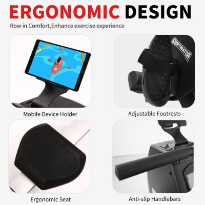 - 【TOTAL BODY WORKOUT】 The rowing machine tones and strengthens a wide range of muscles in the legs, hips, core, back, arms and shoulders, promoting balanced development and strength.The 3D butterfly seat and non-slip footrests provide stable support for the hips and feet, ensuring precise application of force during the rowing exercise. This greatly reduces impact on the joints and effectively prevents injuries to ankles, knees and hips.